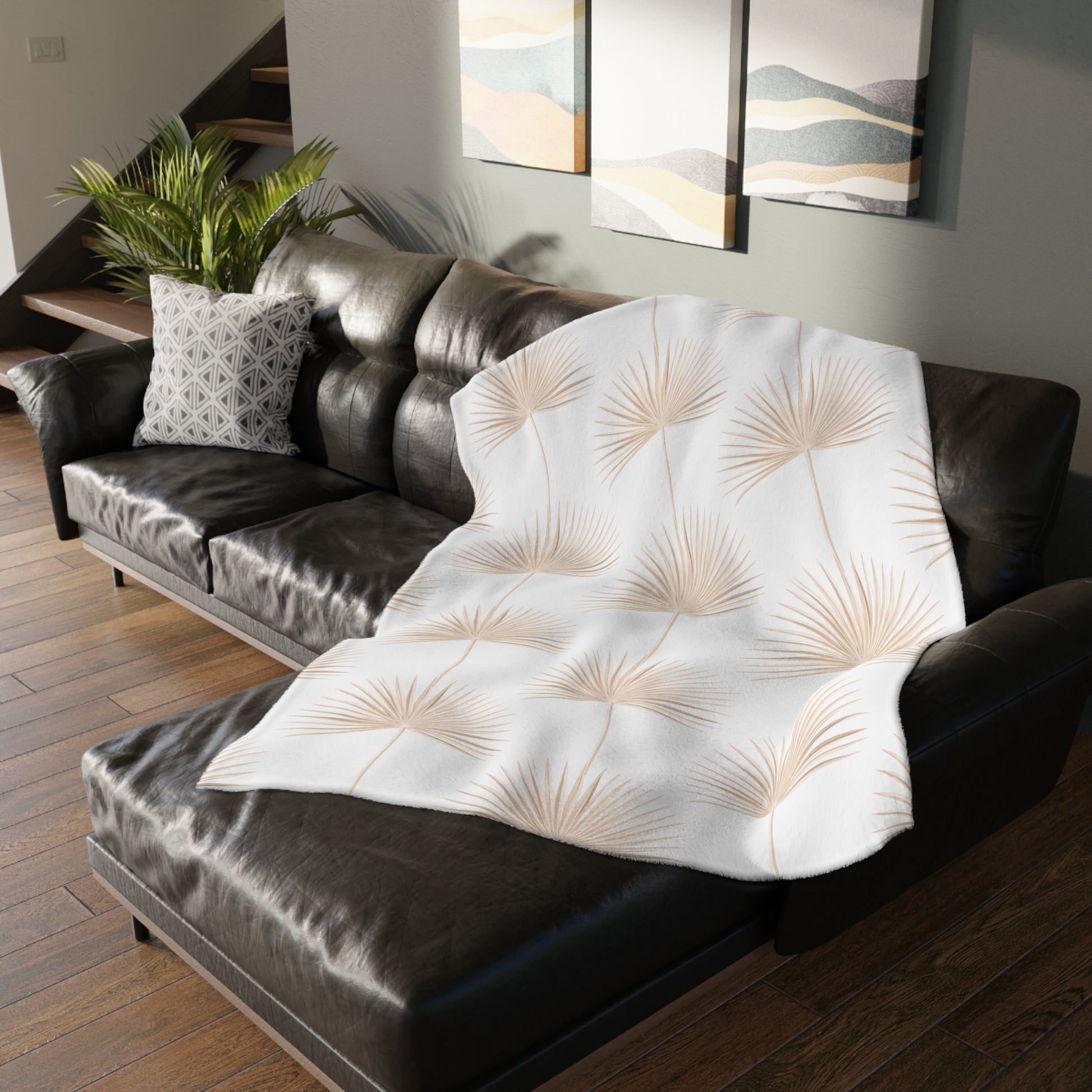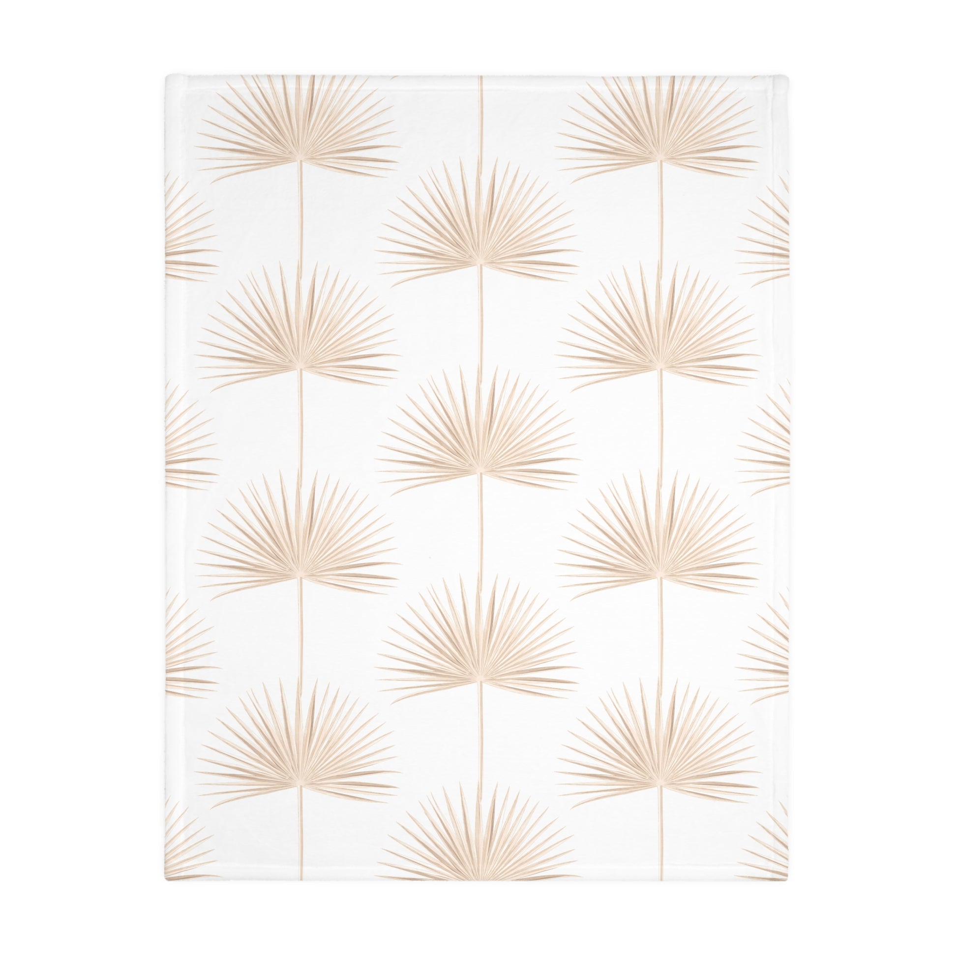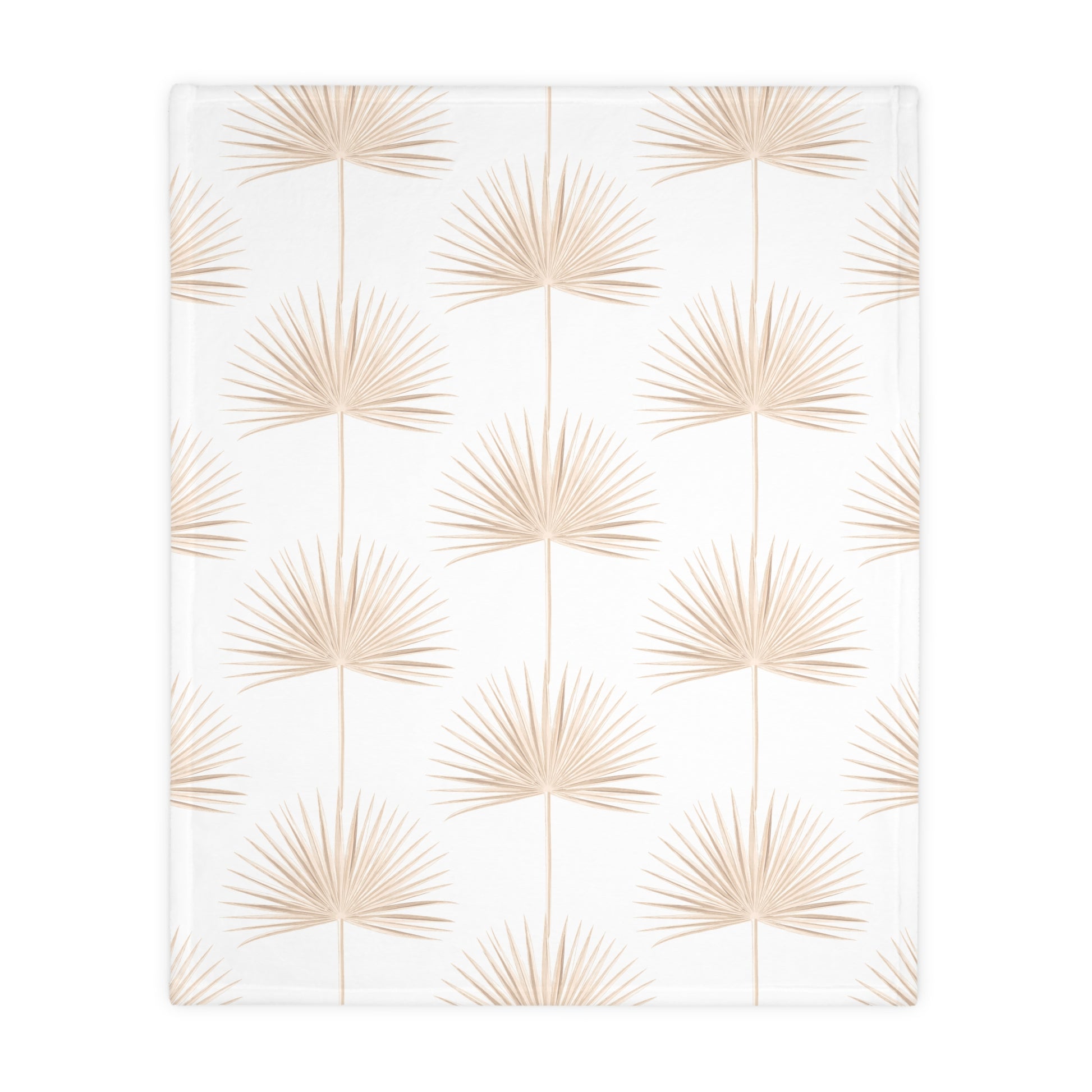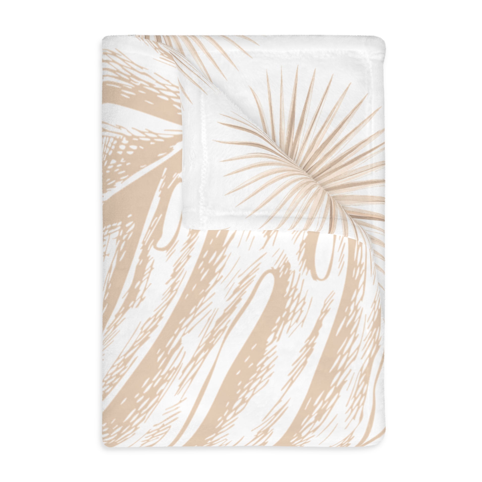 Monstera Fan Palm White Tan Oahu Velveteen Microfiber Blanket